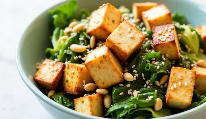 Assemble the salad just before serving to keep the tofu crispy and the greens fresh.
