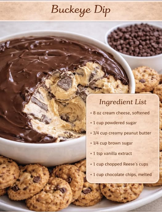 This Buckeye dip is creamy, sweet, and loaded with peanut butter flavor, finished with a smooth chocolate topping. Perfect for parties, game day, or holiday dessert tables—and it disappears fast.