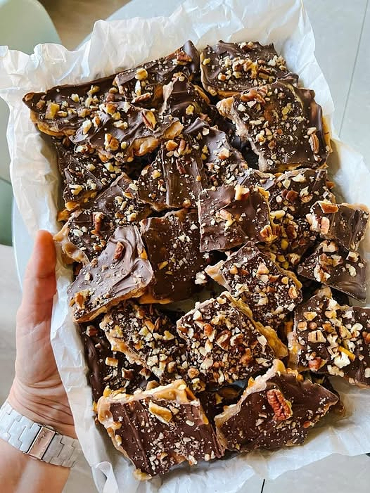 This sweet-and-salty treat layers crisp crackers with rich caramel and melted chocolate, finished with a sprinkle of nuts or festive toppings. Itβs quick, easy, and always disappears fast.