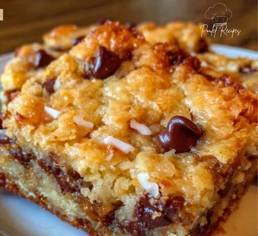 These chewy, gooey cookie bars are loaded with melty chocolate chips, crunchy toffee bits, and sweet shredded coconut. Perfect for bake sales, parties, or just treating yourself! They have the perfect balance of texture and flavor β€” crispy edges, soft centers, and a touch of tropical flair.