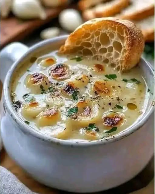 A humble yet elegant soup made with whole garlic cloves slowly simmered in broth until sweet and soft, then finished with herbs, egg, and crusty bread. Rich in flavor, light on ingredients — it’s a timeless French comfort food.