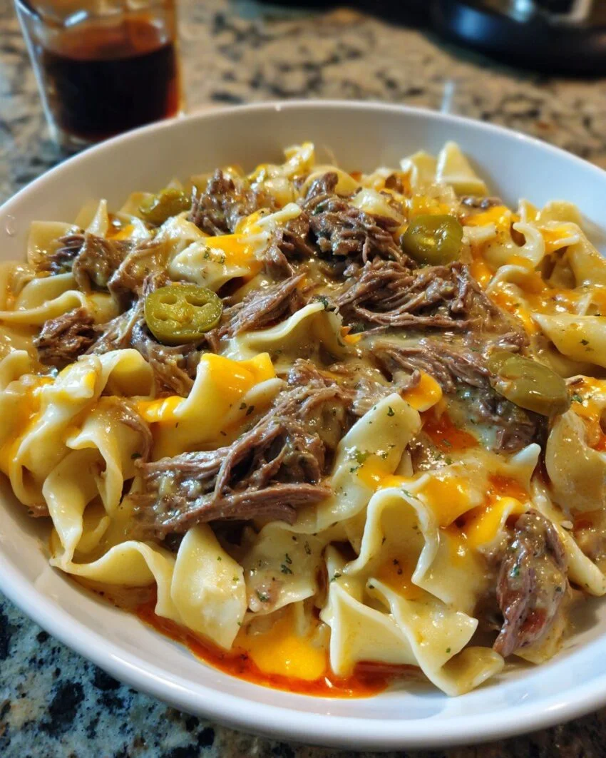 This Crock Pot Mississippi Beef Noodles recipe takes the internet-famous Mississippi pot roast and gives it a cozy twist by serving it over tender egg noodles. It’s hearty, full of tangy, buttery, savory flavor, and perfect for family dinners or easy meal prep — all done in the slow cooker!