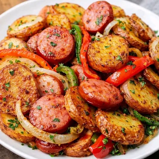 Fried Potatoes Onions And Smoked Polish Sausage