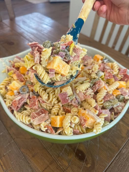 Inspired by the viral deli-style “grinder sandwich,” this pasta salad is bold, creamy, tangy, and loaded with flavor. It combines tender pasta with crisp lettuce, savory deli meats, cheese, and a zesty dressing that ties everything together. Perfect for potlucks, meal prep, or a hearty side dish, this salad delivers that classic sub-style taste in every bite.
