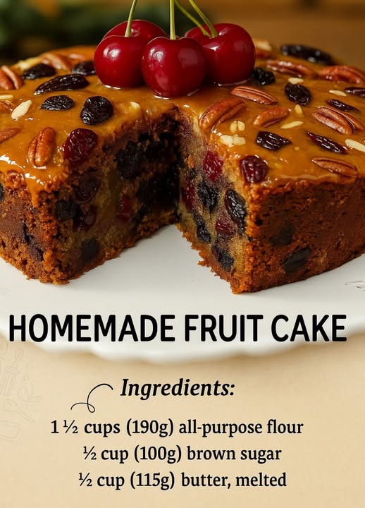 A homemade fruit cake is a classic dessert filled with dried fruits, warm spices, and a soft, moist texture. Unlike store-bought versions, this homemade recipe is rich, flavorful, and perfect for holidays, family gatherings, or a special afternoon treat. With the right balance of fruits, nuts, and spices, this fruit cake becomes incredibly delicious and aromatic.