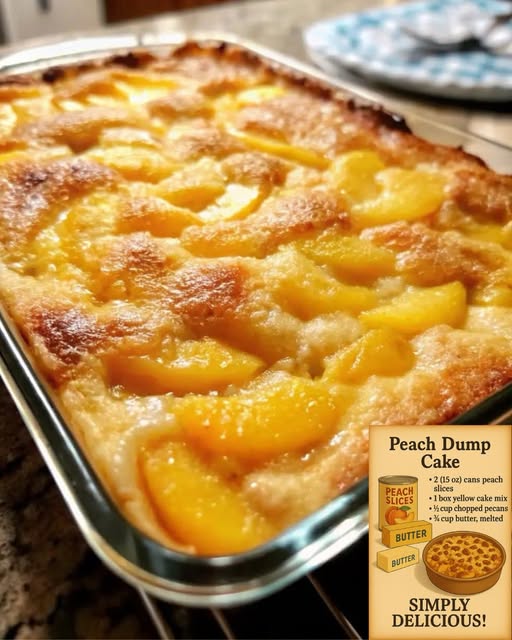 Peach Dump Cake is a ridiculously simple dessert that “dumps” ingredients into a pan and bakes into a golden, buttery cobbler-like treat. Perfect for last-minute guests, potlucks, or cozy nights in, it takes just minutes to prepare — no mixing bowls required!