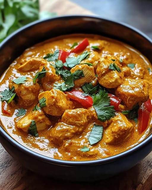 This dish is packed with bold, nutty, and savory flavors — a rich and creamy take on classic satay-inspired chicken. Tender chicken is simmered in a luscious peanut butter and coconut milk sauce, spiced with garlic, ginger, and a touch of chili. Perfect served over rice, noodles, or with flatbread.