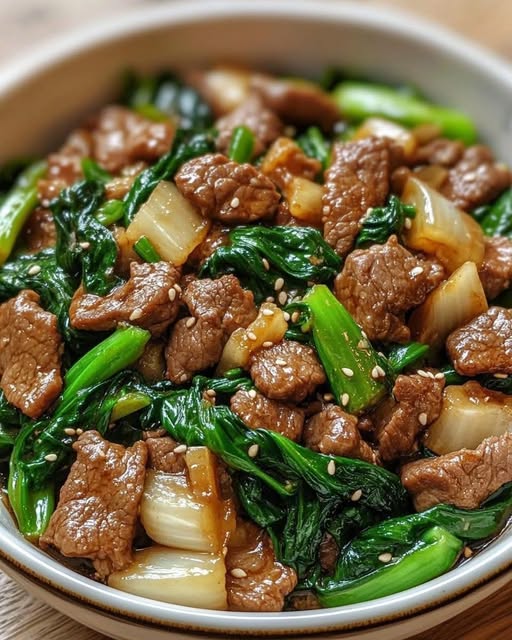 Tender strips of beef stir-fried in a fragrant garlic-ginger sauce, paired with crisp, vibrant bok choy for a deliciously savory, slightly spicy, and ultra-satisfying dish. A weeknight winner that’s ready in under 30 minutes!