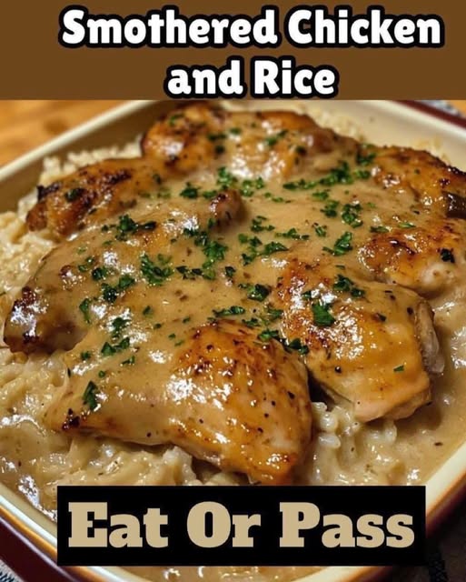 This Smothered Chicken and Rice is a soulful, homestyle dish where seasoned chicken is browned, then slow-simmered in a savory onion gravy and cooked together with rice. Cozy, filling, and perfect for family dinners.