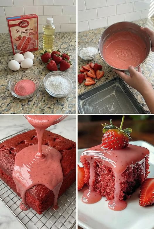 Strawberry Glaze Cake is a soft, moist cake bursting with sweet strawberry flavor and topped with a smooth, glossy strawberry glaze. This beautiful dessert is perfect for spring and summer gatherings, birthdays, or anytime you want a fruity homemade treat. The glaze adds a delicious sweetness while giving the cake an attractive finish that makes it look bakery-style.