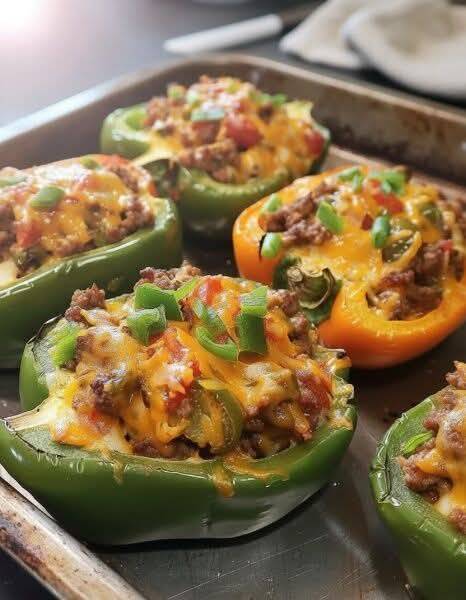 Stuffed bell peppers are a wholesome, all-in-one meal — colorful peppers filled with a savory mix of seasoned meat, rice, veggies, and melty cheese. Baked to perfection, they’re satisfying, easy to make, and endlessly adaptable to what you have on hand. A perfect way to use leftovers or stretch ingredients.