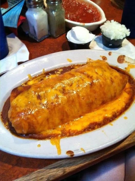 Wet Burritos are large, hearty burritos smothered in a rich, flavorful red or green sauce and topped with melted cheese. They’re baked until bubbly and served hot, often with rice, beans, or a crisp salad. Originating from Michigan (especially Grand Rapids), these burritos are a cross between Tex-Mex flavor and Midwestern comfort food—messy, cheesy, and irresistible.
